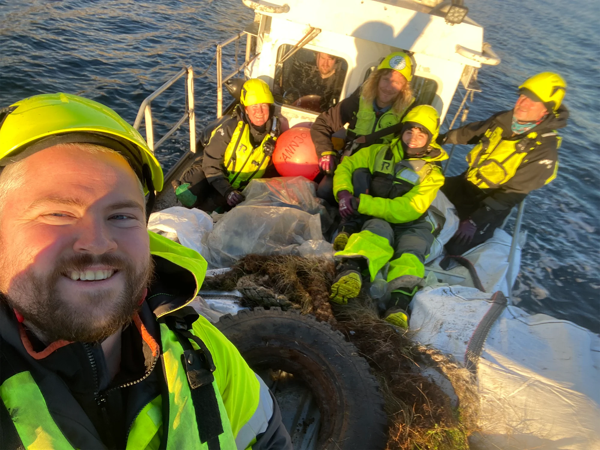 Erik Mæhle sammen med Kay Valvik, Tore Hunskår og Kari Efjestad utgjer Fjordane Friluftsråd sitt eige ryddelag med base i Florø. Det er dei som er på jobb for å rydde langs kysten av medlemskommunane våre.